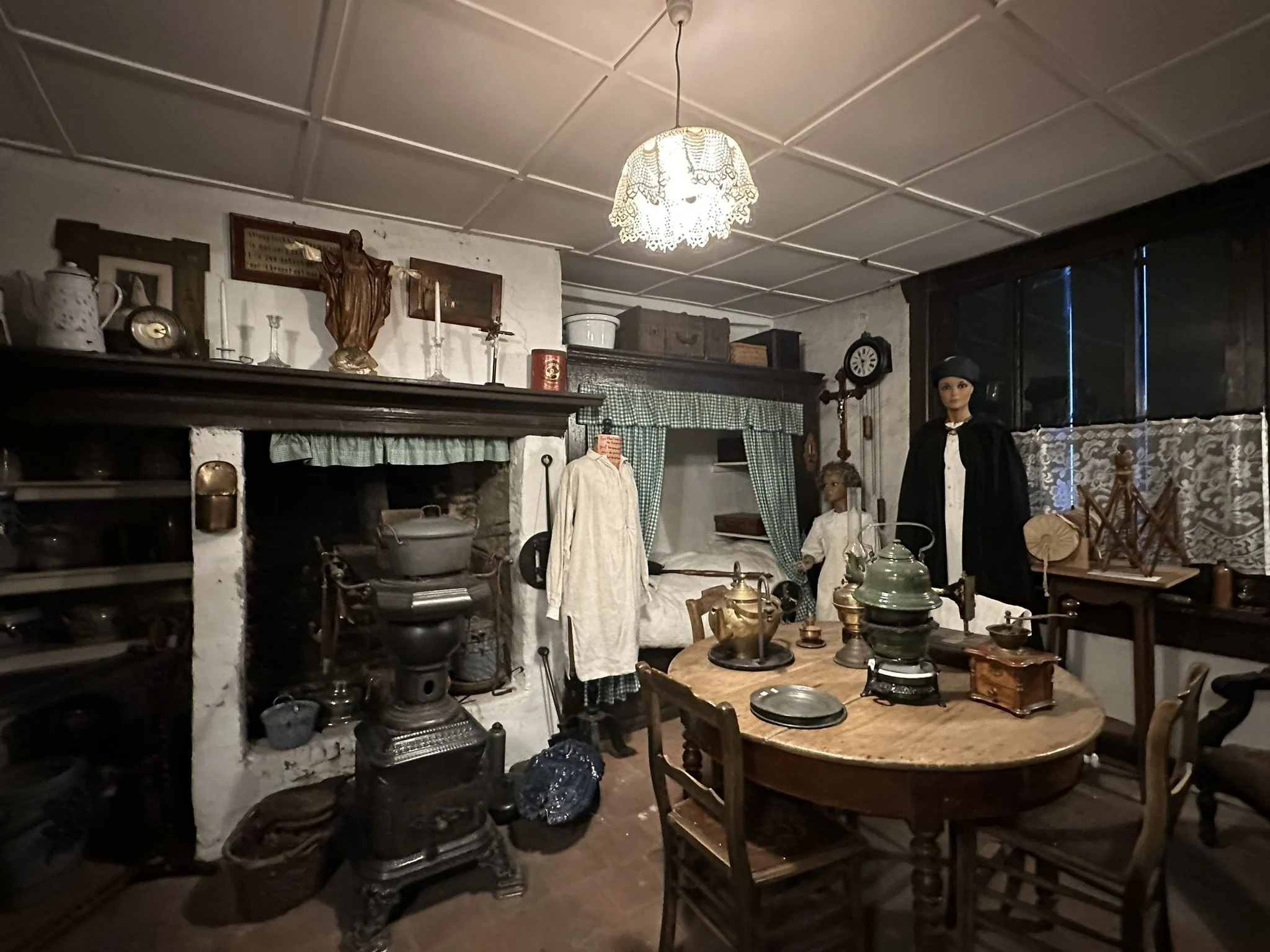 In de oude arbeiderswoning, waar rond 1900 zes families woonden zonder stromend water, zonder gas of electriciteit en met slechts één “gemak”, zoals een toilet toen genoemd werd, zie je het grote contrast met onze moderne tijd.